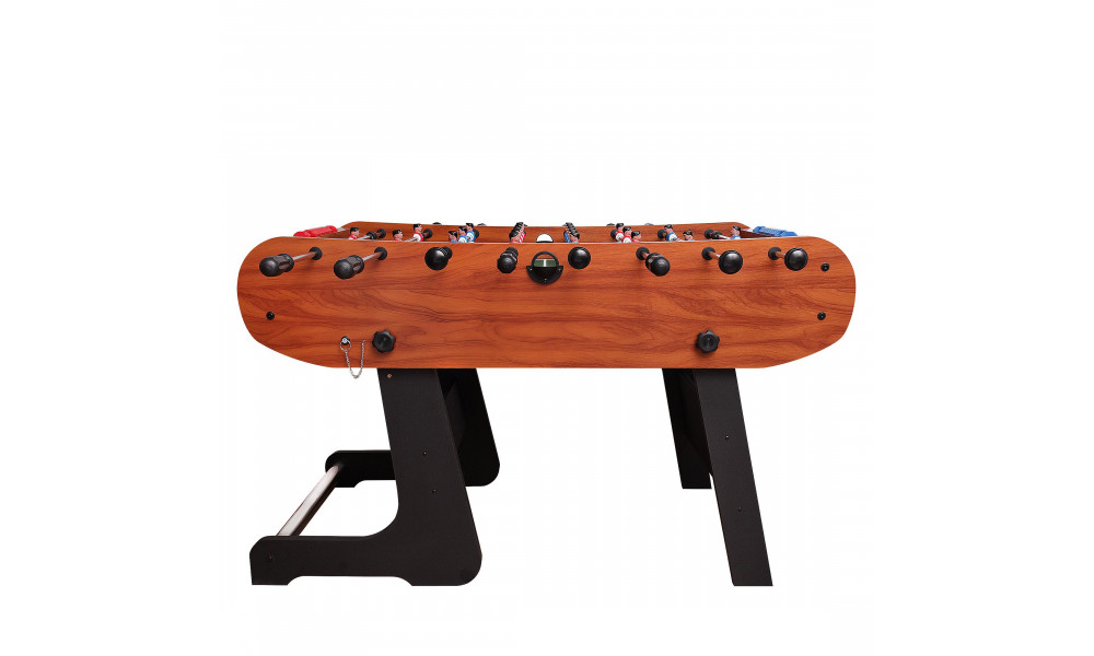 Игровое поле изготовлено из МДФ с виниловым покрытием, которое надежно защищает поле от влаги, царапин, сколов и других повреждений. На прочные металлические штанги нанесено хромированное покрытие, препятствующее появлению ржавчины.